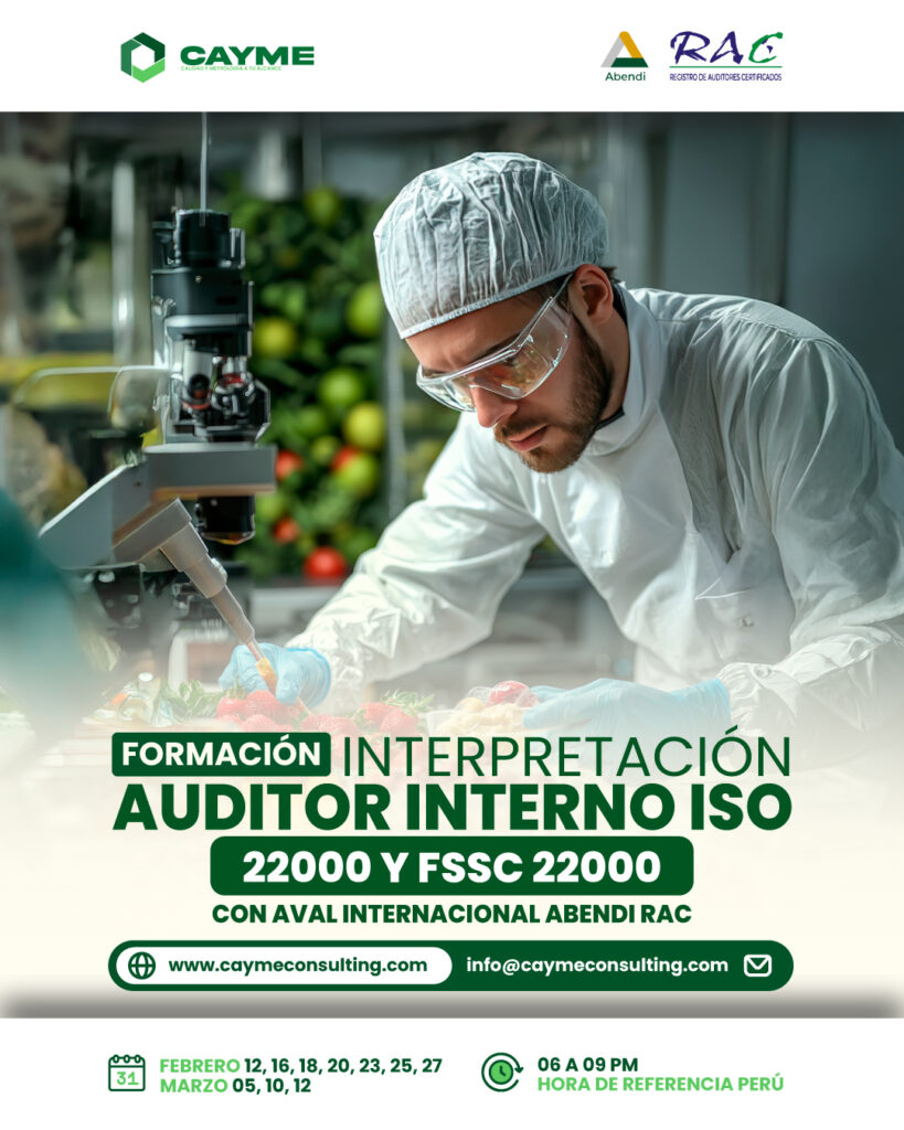 Formación en Interpretación, Implementación y Auditor Interno ISO 22000 y FSSC 22000 con aval Internacional ABENDI RAC (Registro de Auditores Certificados).